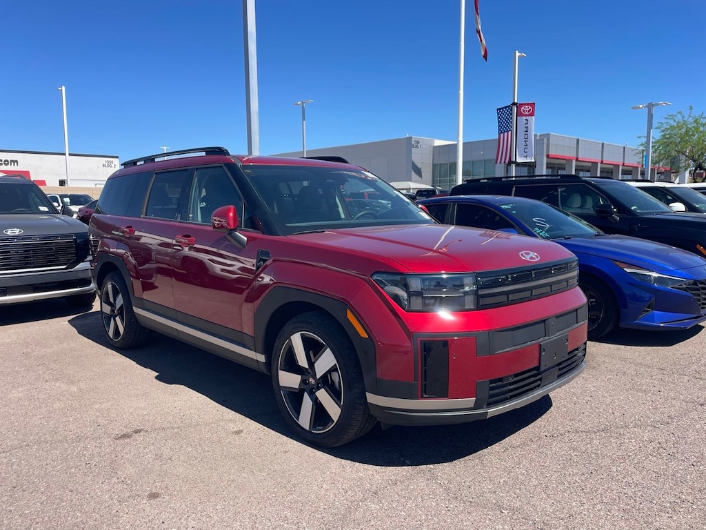Experience the perfect blend of efficiency, luxury, and advanced technology with the 2025 Hyundai Santa Fe Hybrid Limited in striking red, designed for drivers who demand more from every journey.
