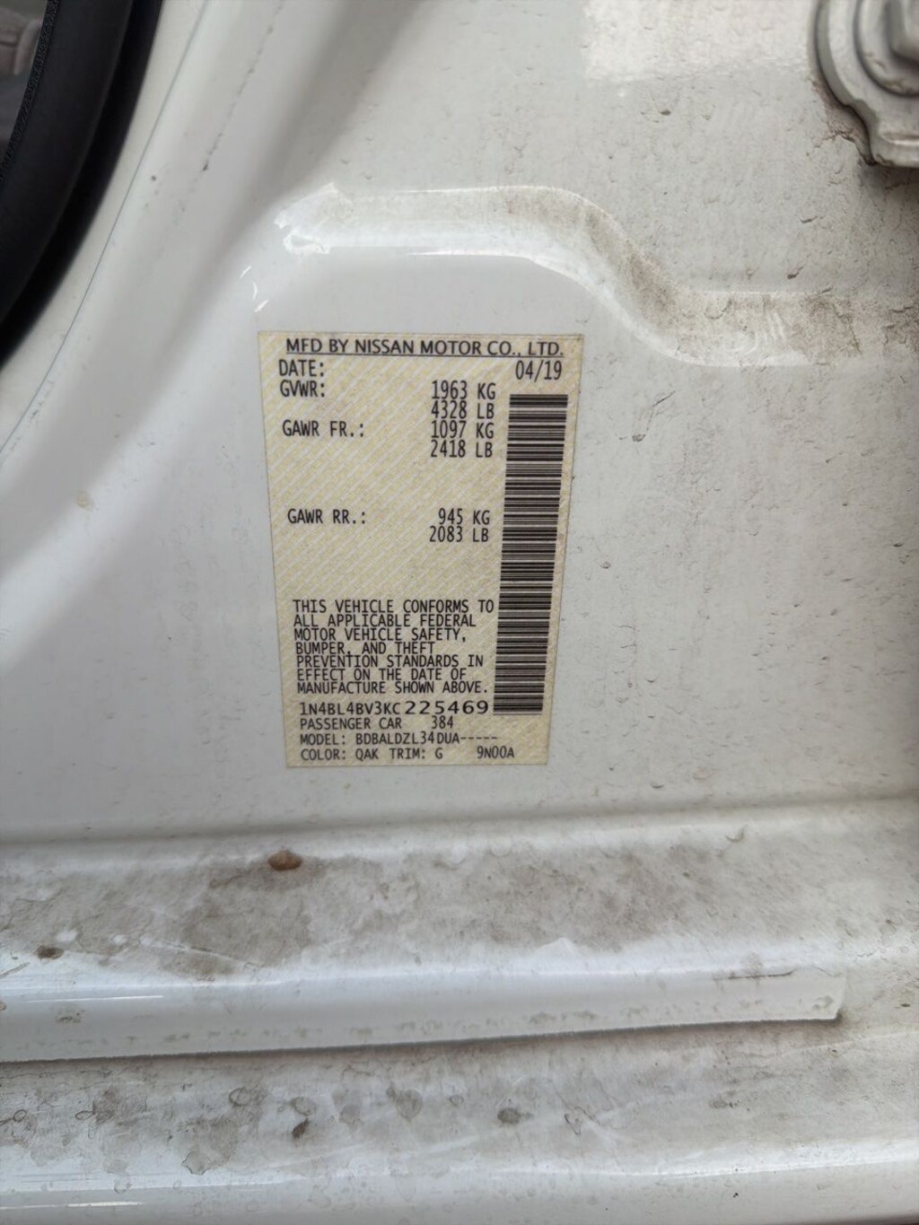 2019 Glacier White Nissan Altima 2.5 S
